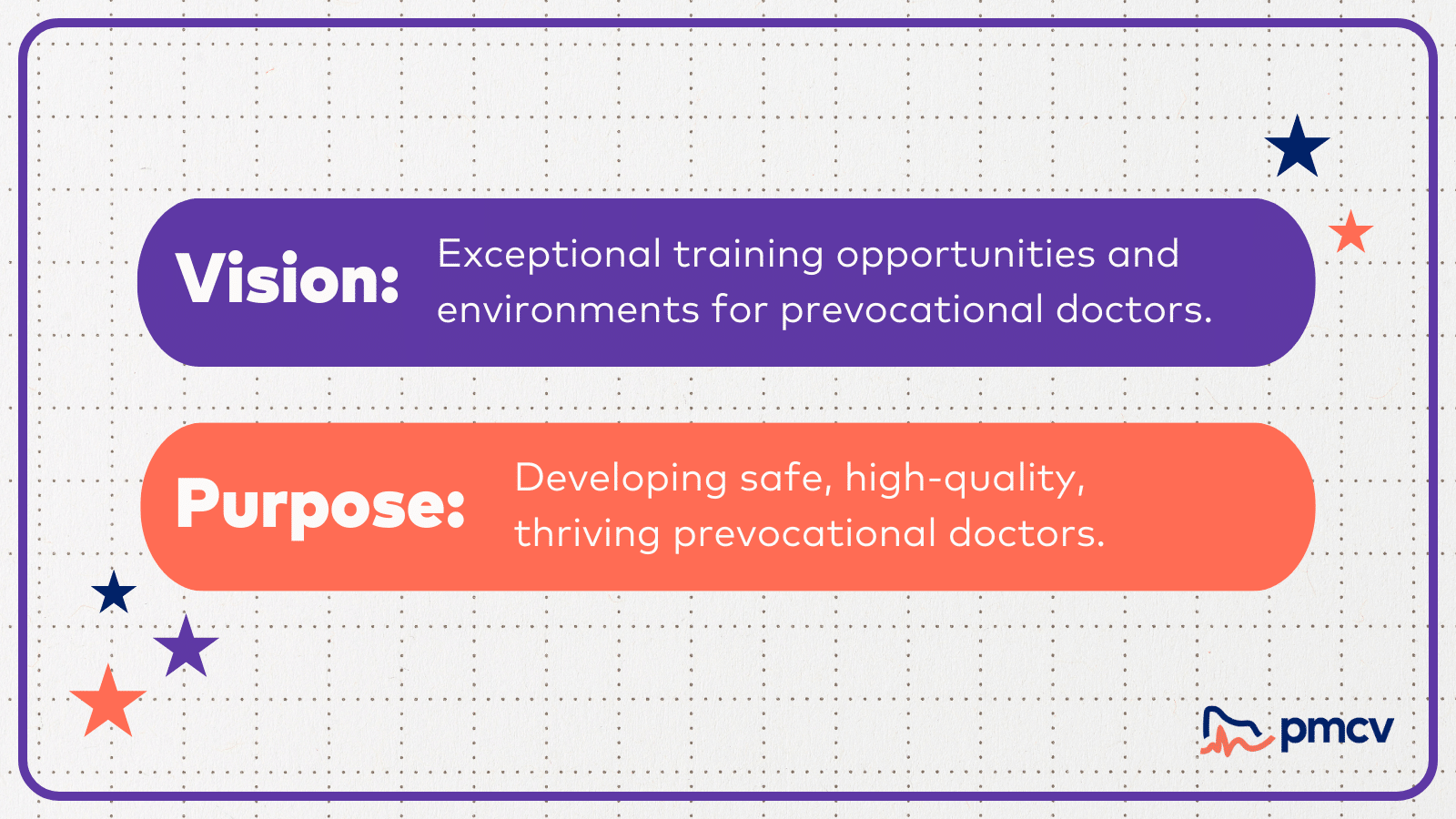 PMCV strives to deliver exceptional training opportunities and environments for prevocational (PGY1 and PGY2) doctors throughout all health facilities in Victoria. We do this by working across the public healthcare system, both within Victoria and throughout Australia, to help improve the educational and training opportunities that are available to support the welfare and career development of prevocational doctors who have recently graduated or commenced work in Victoria.