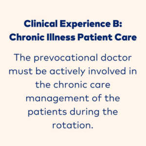 The term descriptions for each rotation will indicate which of these clinical experiences are covered in that term (one or two per term).